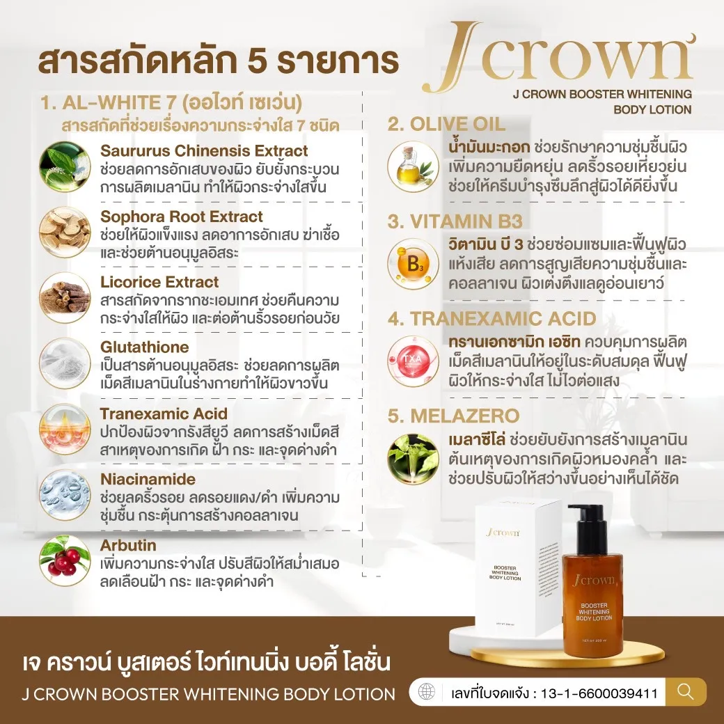 J Crown Booster Whitening Lotion โลชั่น เจคราวน์ ผิวเรียบเนียน กระจ่างใส ชุ่มชื่น โลชั่นจ๊ะ